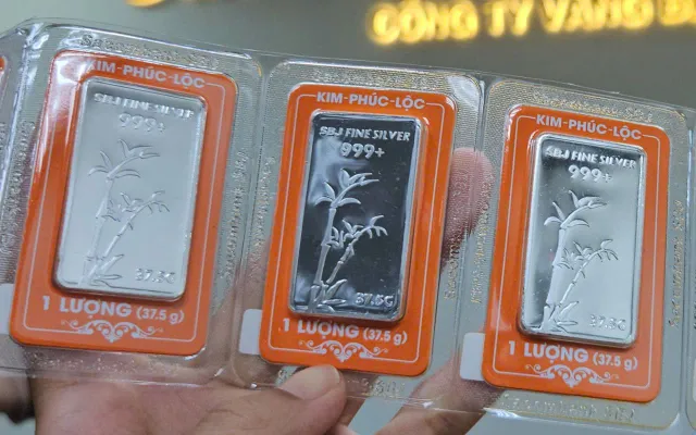 Ở thị trường trong nước, các doanh nghiệp cũng điều chỉnh tăng mạnh giá bạc khi vừa mở cửa. Công ty vàng bạc đá quý Sacombank (SBJ) niêm yết giá bạc miếng mua vào 3,52 triệu đồng/lượng, bán ra 3,627 triệu đồng/lượng, tăng 48.000 đồng mỗi lượng so với hôm cuối tuần.