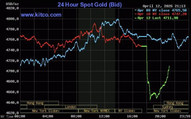 Tính đến 8 giờ 30 phút sáng 13/4, giá vàng thế giới giảm 35,3 USD/ounce so kết phiên trước đó xuống mức 4.711,9 USD/ounce.